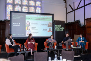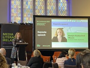 The theme of this year’s conference was Media Literacy – Supporting communities, fostering citizenship, promoting democracy. The conference was opened by Aoife MacEvilly, Broadcasting and Video on Demand Commissioner at Coimisiún na Meán, Ireland’s media regulator. The keynote speaker at the conference was Roslyn Kratochvil Moore from Deutsche Welle Akademie, who addressed the topic of Democracy’s Missing Infrastructure: Why Community-based Media Literacy Matters.