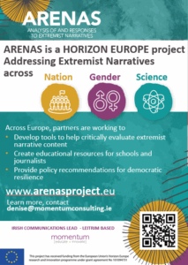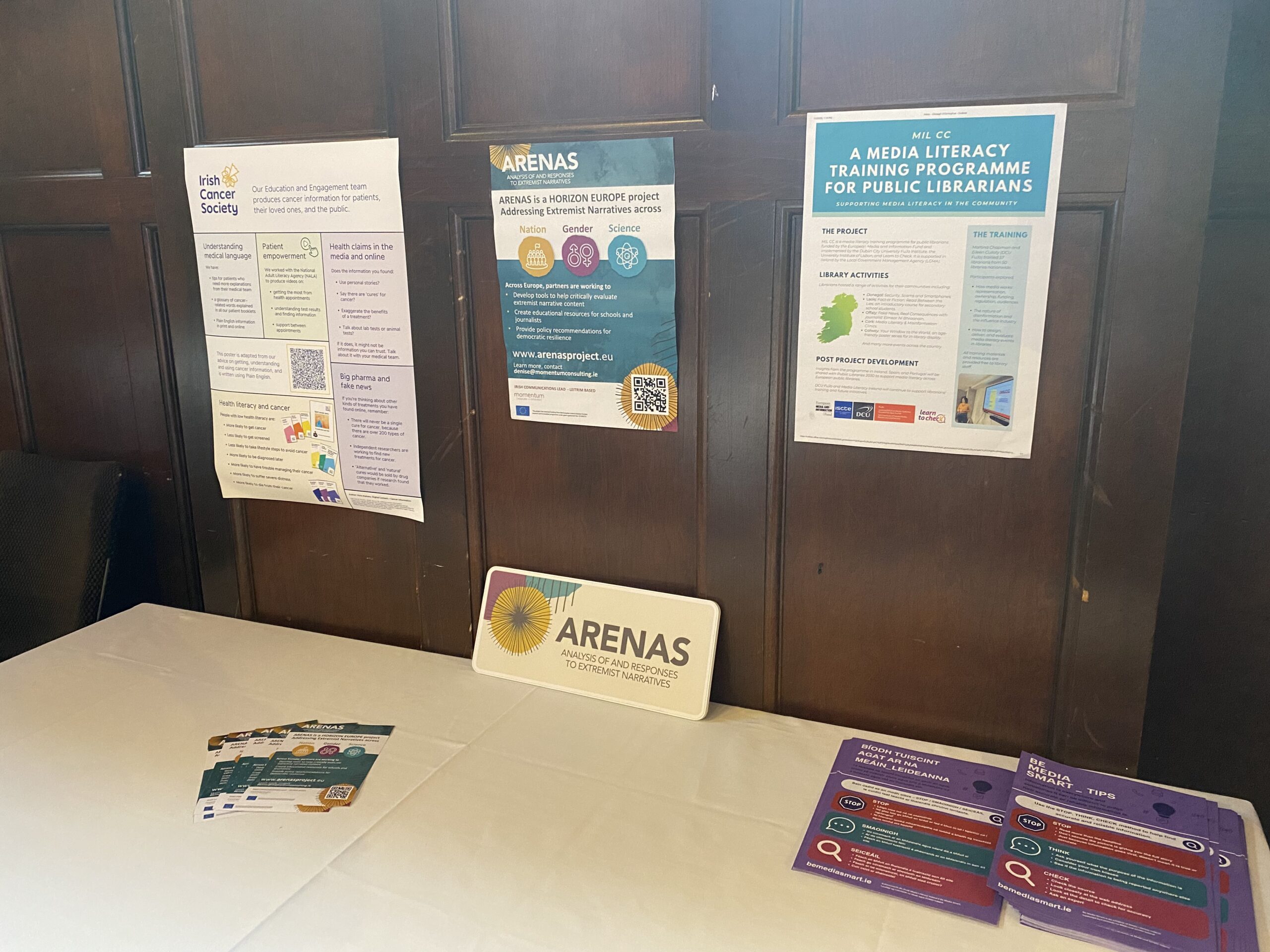 Denise Callan, from Irish Partner Momentum, recently attended the Media Literacy Ireland conference in Dublin, where she shared information about the ARENAS project with attendees. Media Literacy Ireland is an informal alliance of individuals and organisations who work together on a mainly voluntary basis to promote media literacy in Ireland. The organisation invited ARENAS to display a poster at the event, and ARENAS promotional flyers were also distributed at each table.