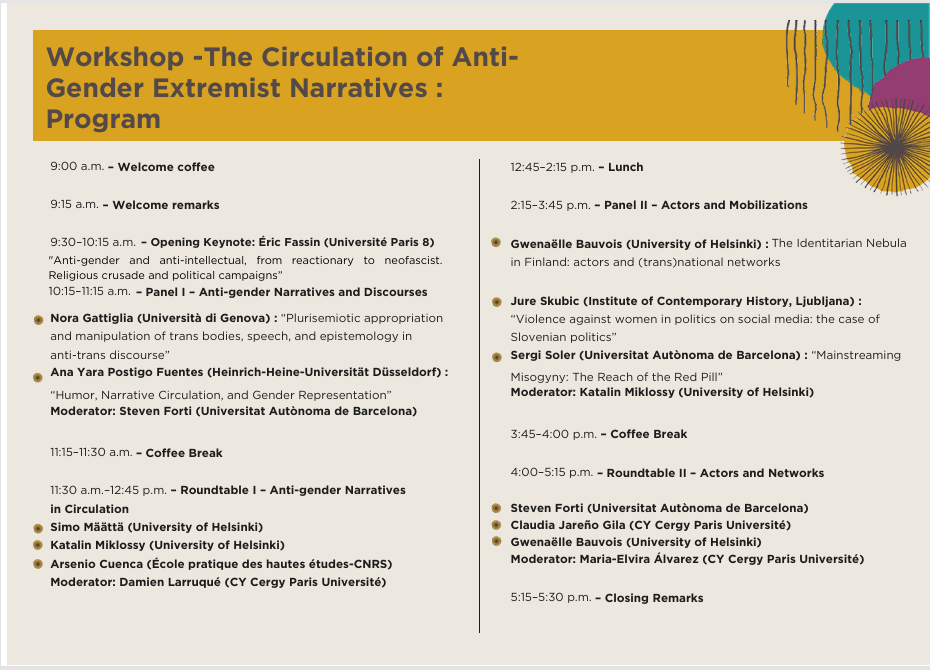On Thursday, March 19, 2026, scholars, researchers, and practitioners from across Europe will gather at CY Cergy Paris Université for an in-depth workshop exploring The Circulation of Anti-Gender Extremist Narratives.